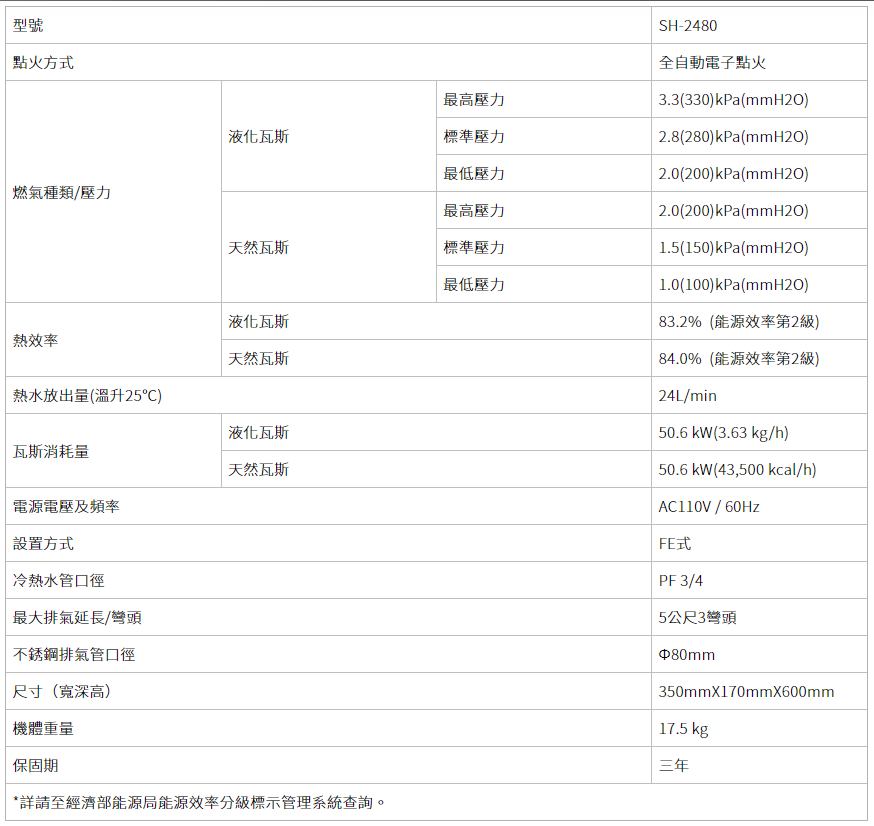 最大排氣延長/彎頭:5公尺3彎頭