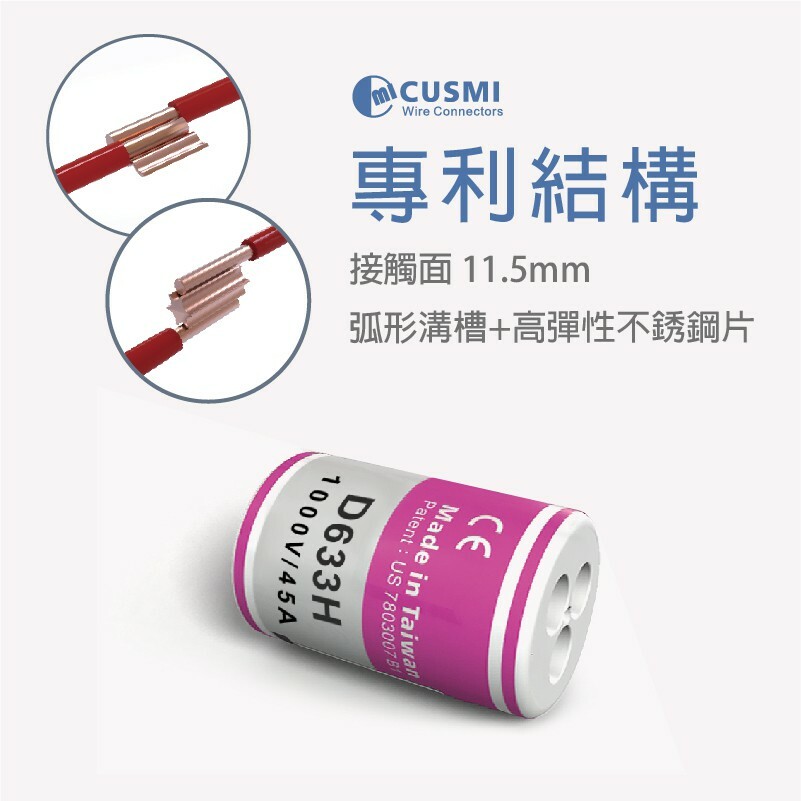 浪形銅片/六角同柱弧形結構,電線接觸面積11.5mm,大於2.0線徑接觸面積10mm,可耐電流30安培