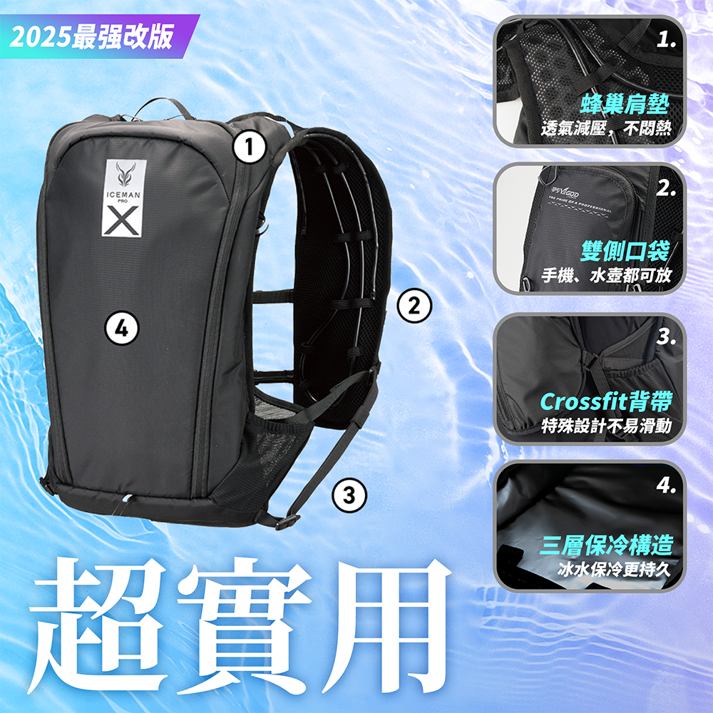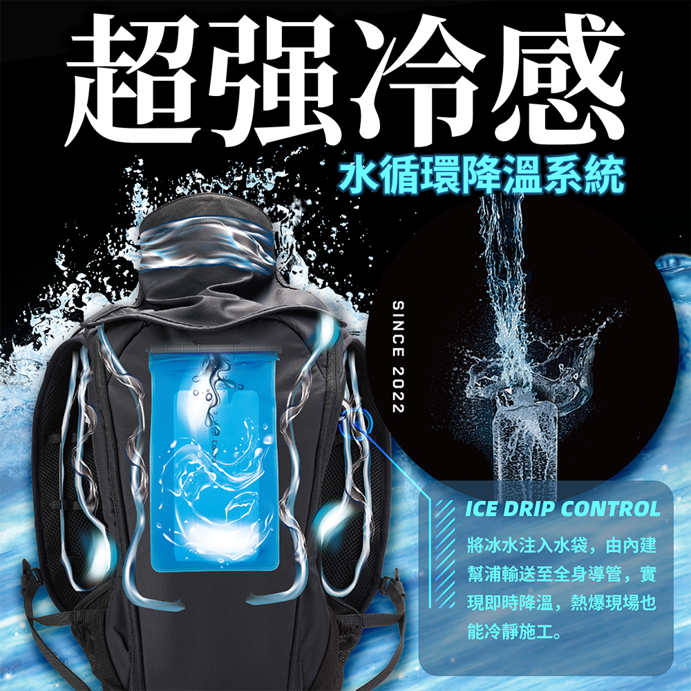 將冰水注入水袋,由內建幫浦輸送至全身導管,實現即時降溫,熱爆現場也能冷靜施工。