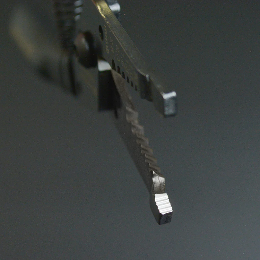 由於刀片的精密研磨,可能會在被覆層下傷害到芯線,因此可能無法以非常高的精度進行操作。即使在以前的條件下進行微調也很困難,但本產品輕鬆實現了在不損壞芯線的情況下進行精密操作