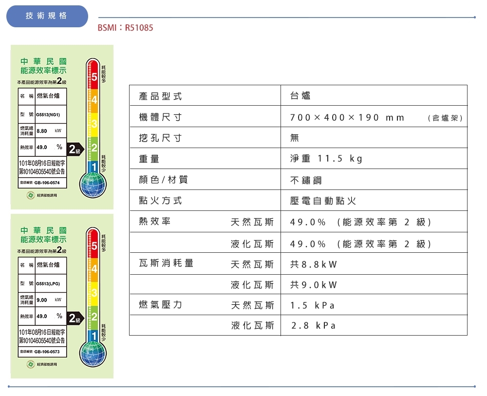 ▪ 專利雙環內焰技術,火焰內聚更省能