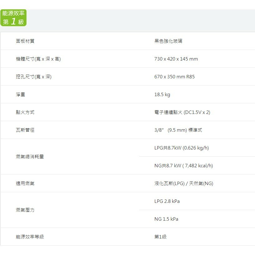 適用燃氣:液化瓦斯(LPG)/天然氣(NG)