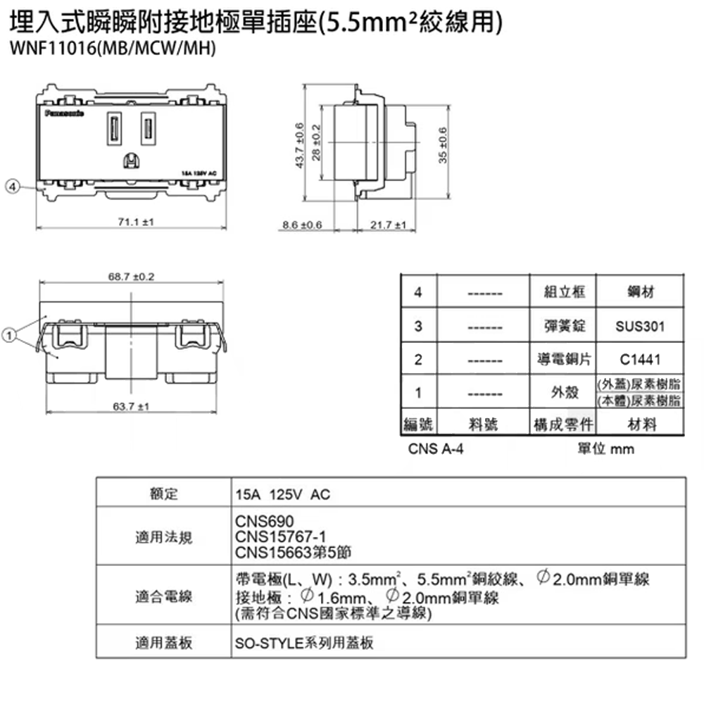 適用電線:3.5mm2 、5.5mm2 銅絞線、φ2.0mm銅單線 接地極:φ1.6mm、φ2.0mm銅單線