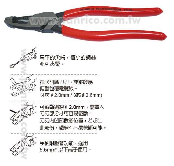 多功能鋼絲電纜壓著鉗,具壓著鉗/鋼絲鉗/電纜剪功能