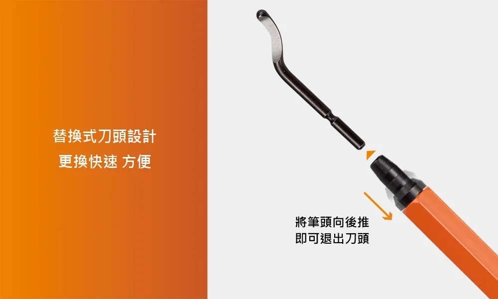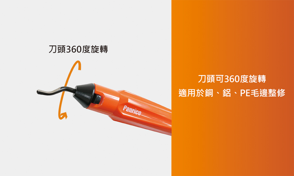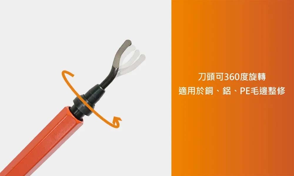 刀頭可360度旋轉,只要旋轉管內邊緣,可進行刮刀及去毛邊