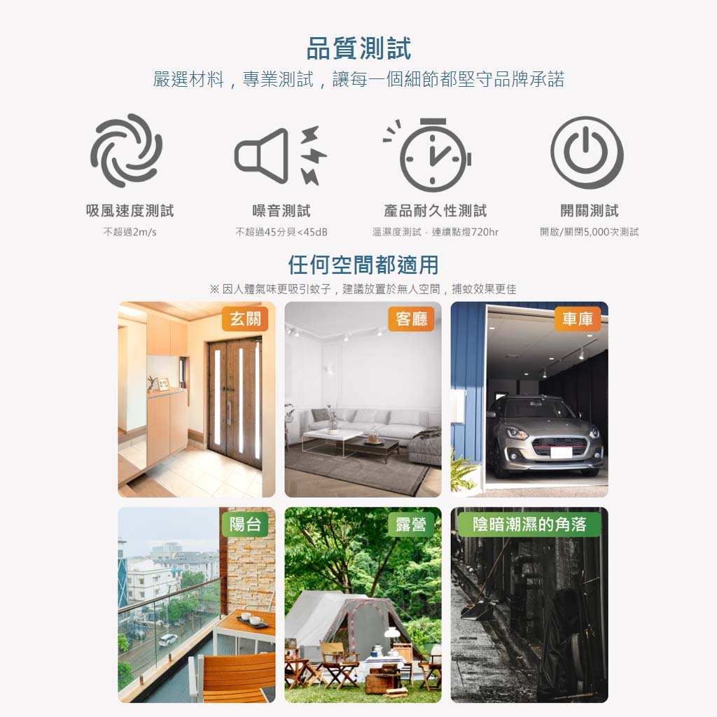 智慧光感應偵測環境光線,低光照時自動開啟捕蚊