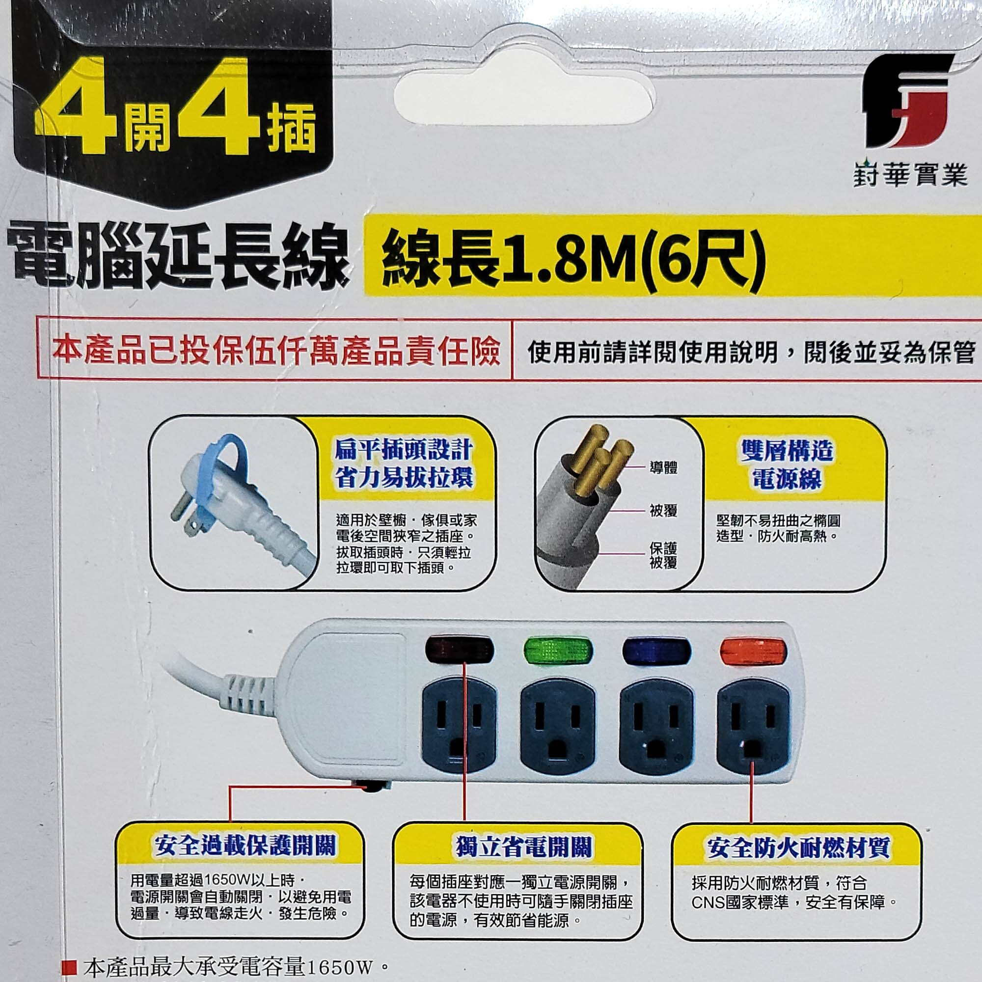 4開4插延長電源線組 產品規格: