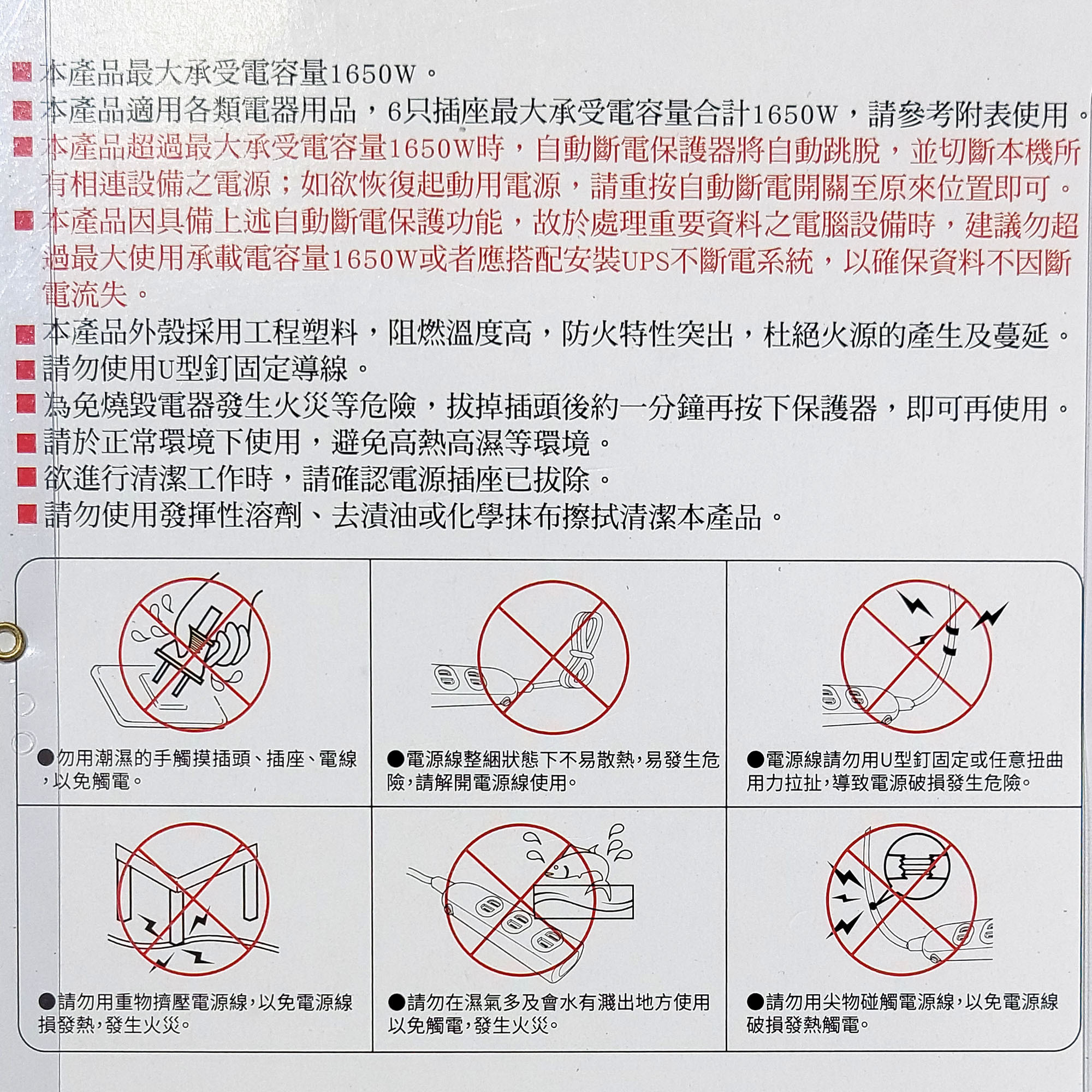 額定規格: AC125V / 15A / 1650W MAX